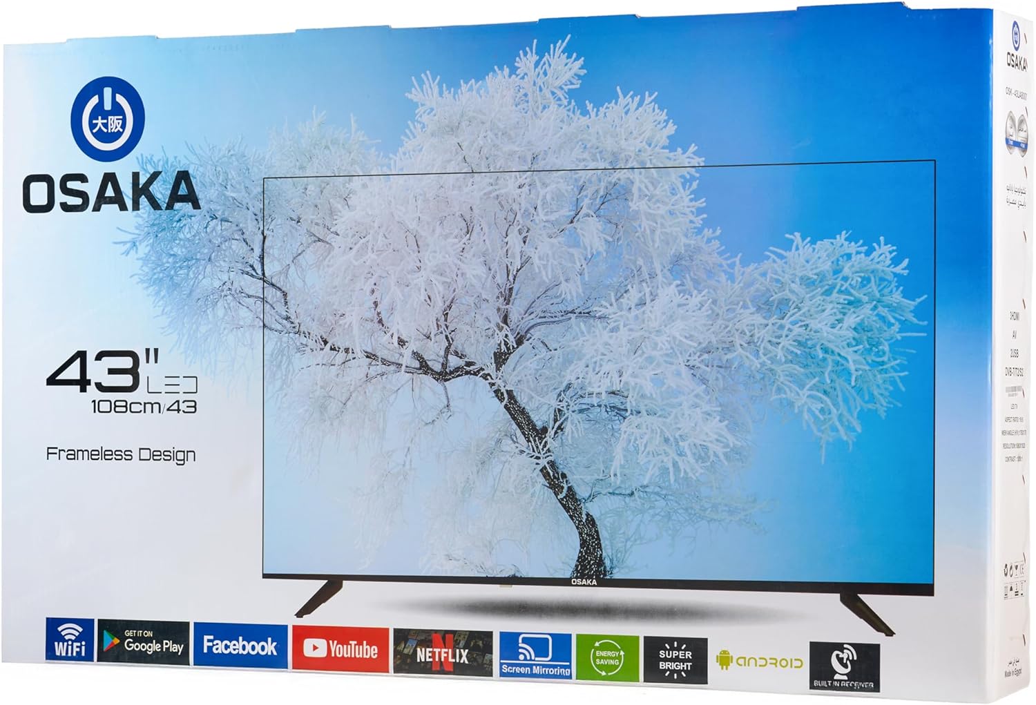 شاشه اوساكا سمارت 43 بوصة Frameless Design ,IPS Display,USB ,HDMI Ports, HD Resolution